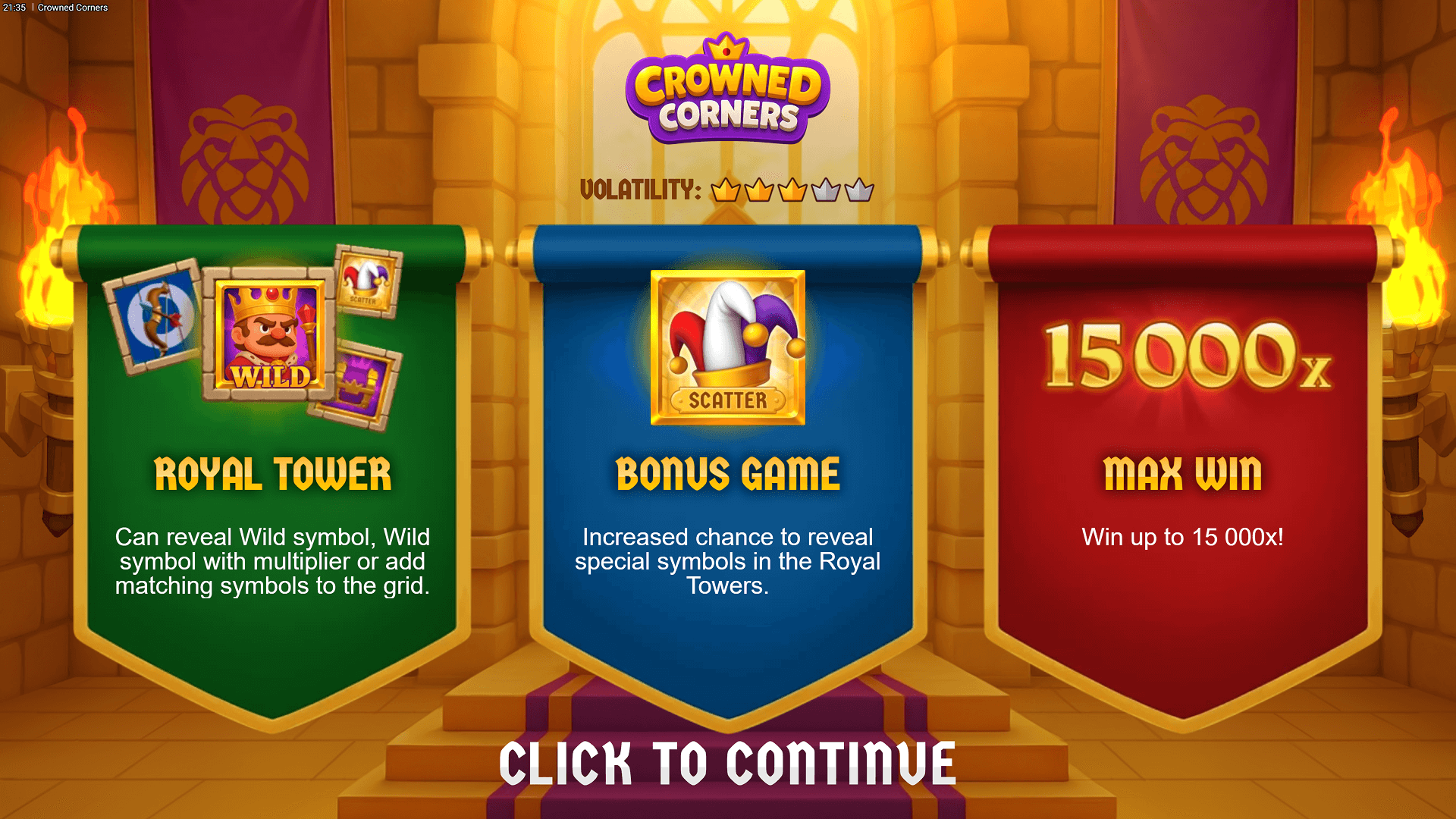 With up to 15 000x your bet on the line and nonstop cascading action, Crowned Corners rewards smart spins and lucky corners!