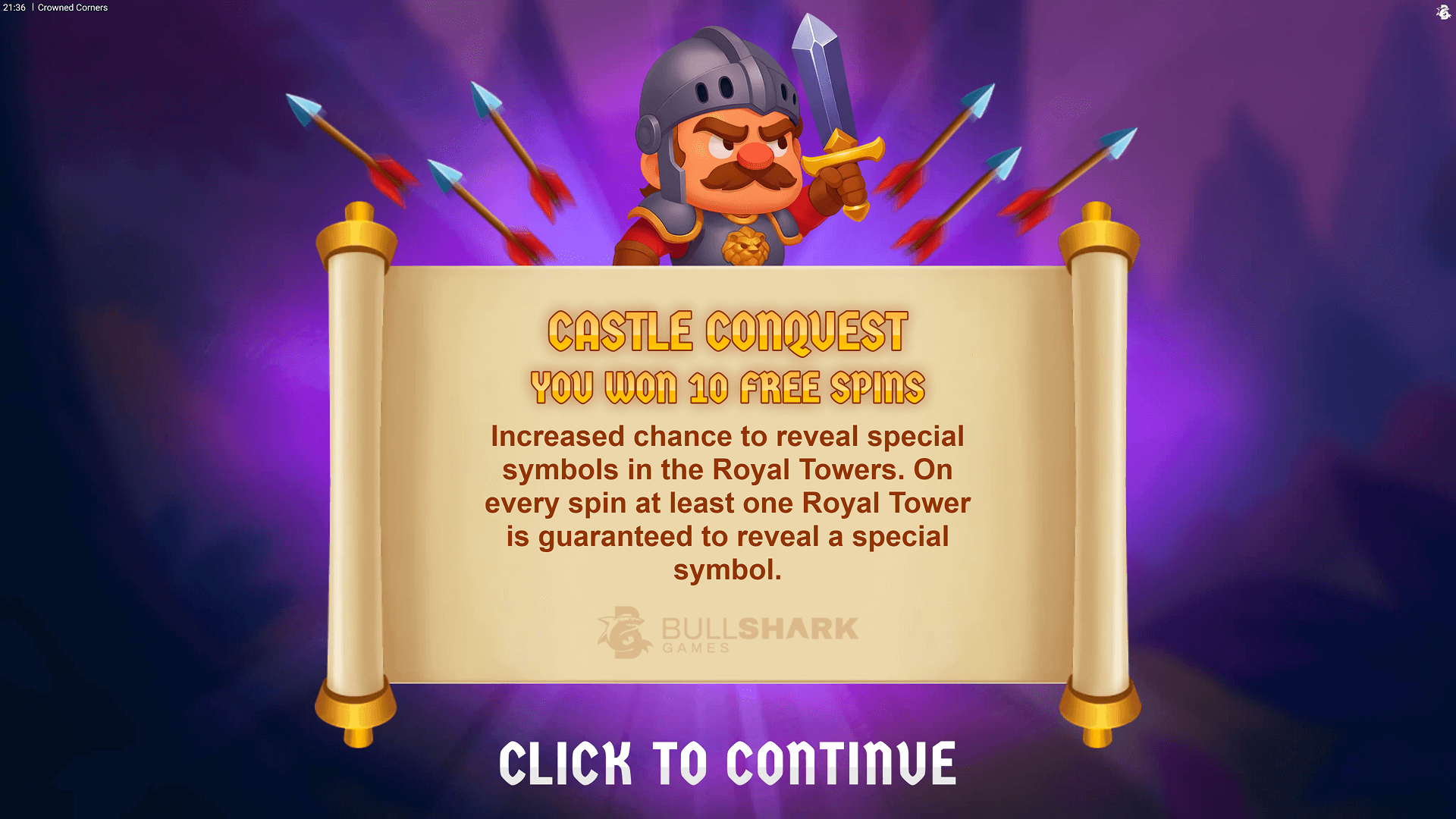 Land 3 or 4 FS Scatter symbols at the same time to trigger Bonus Game feature, where Royal Towers stay active and can award extra spins or more bonus features.